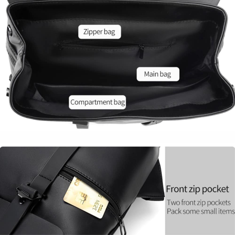 Kolla in denna stiliga ryggsäck som inte bara är en fröjd för ögat utan också smart som en räv! Tillverkad i chict vattenavstötande konstläder, så att en liten regnskur inte ställer till det för dina äventyr. Inuti hittar du ett snillrikt laptopfack för din dator och ett mindre fack för alla de där småprylarna du inte kan leva utan men alltid lyckas tappa bort.