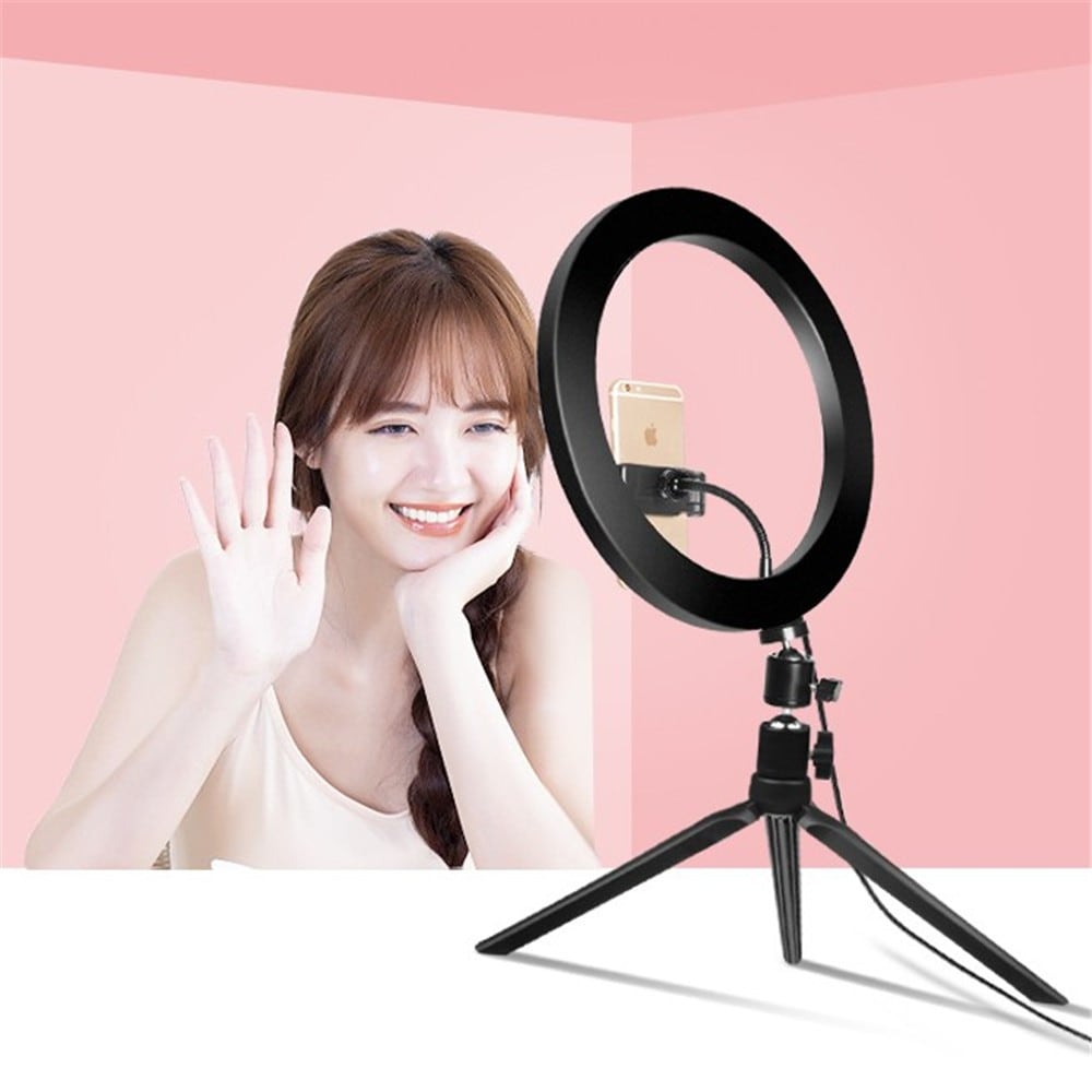 Gör dina foton och videos ännu bättre med denna LED-ringlampa som är perfekt för alla tillfällen! Oavsett om du skapar magiska porträtt, produktbilder, live-streamar eller spelar in videos, kommer denna lampa att ge dig professionell belysning på nolltid. Med 10 dimningsnivåer kan du enkelt justera ljusstyrkan för att matcha varje miljö och behov. Och ja, det finns en smidig fjärrkontroll på sladden som gör det busenkelt att fixa ljuset precis som du vill!