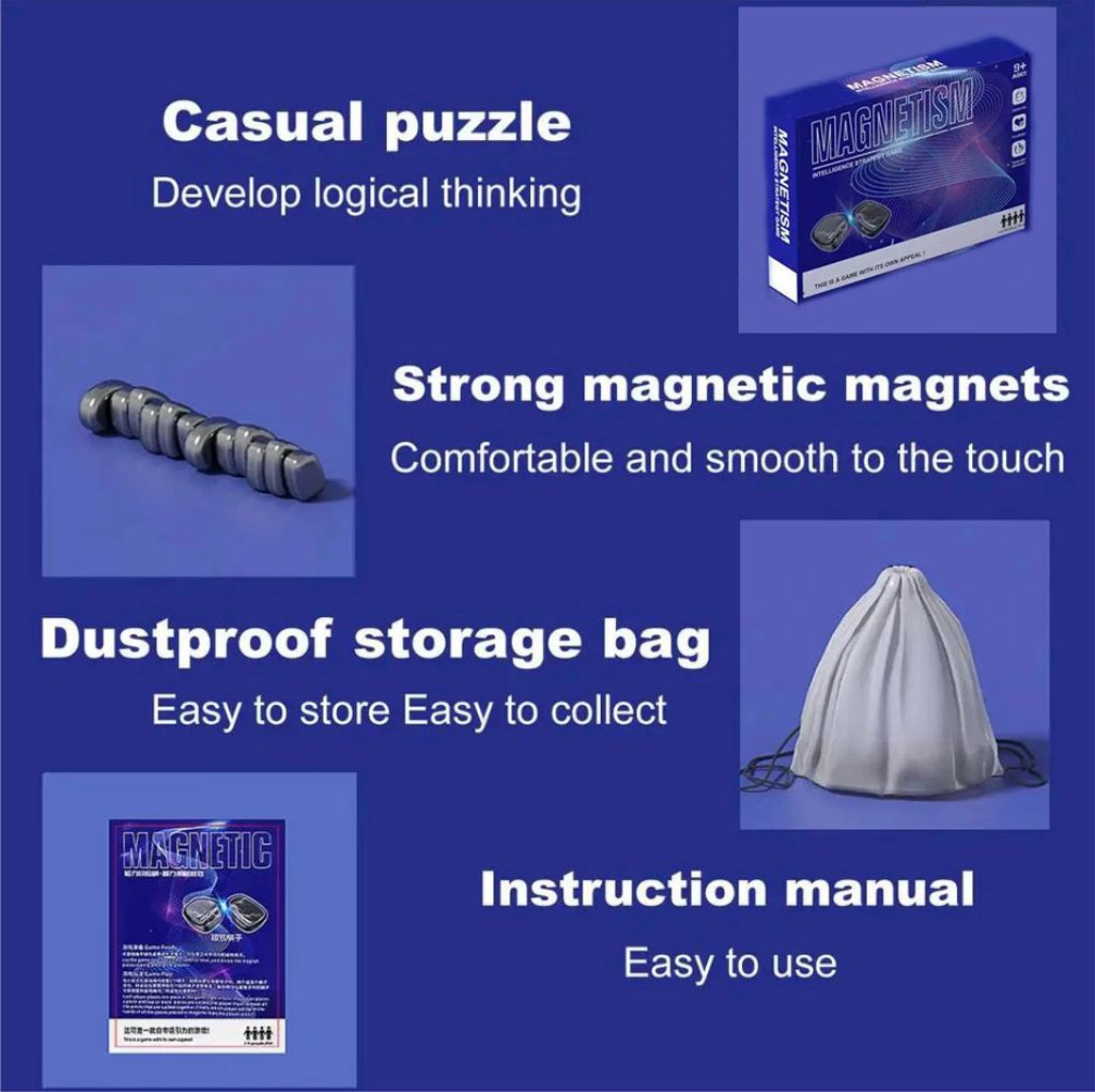 Redo att utmana hjärnan på riktigt? Detta magnetiska brädspel kombinerar strategi, precision och ren spelglädje i ett smart och beroendeframkallande format. Placera dina magneter på spelplanen utan att de dras till varandra och försök överlista dina motståndare. Låter enkelt - men varje drag kräver fokus, taktik och nerver av stål!