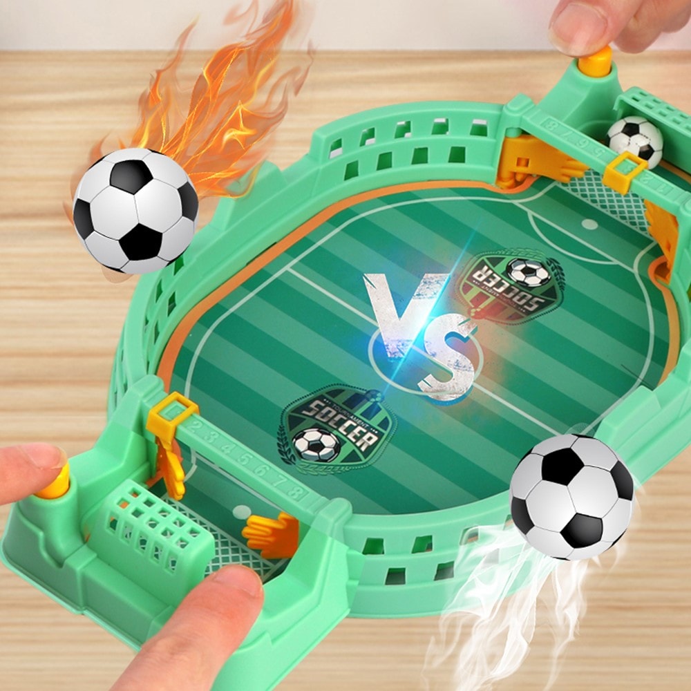 Redo för match? Det här bordsspelet är en riktig fullträff! Starta fotbollsfesten med detta superroliga spel som garanterat höjer fotbollsfebern där hemma! Perfekt för två spelare - tryck på knapparna för att skjuta eller blockera bollen och kämpa om vem som blir dagens vinnare. En leksak fylld av action, skratt och fotbollskärlek som gör varje lekstund till en hit!