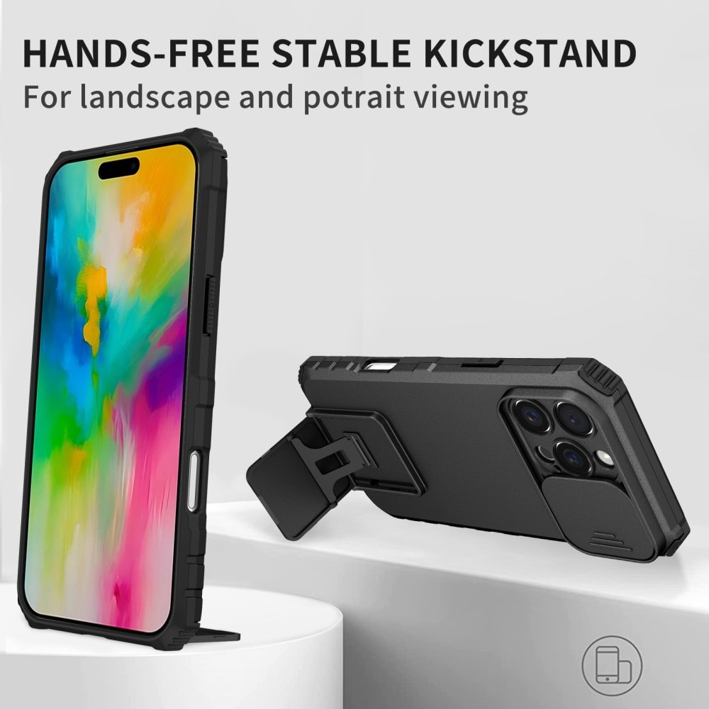 Säg hej till detta superstarka skal till din Apple iPhone 16 Pro Max, komplett med inbyggt kameraskydd och en riktigt smart stativfunktion. Detta är inget vanligt skal! Tänk dig en pansarvagn för din telefon, med en tvålagerskonstruktion som består av en smidig TPU-ram och ett tufft yttre hölje i hårdplast. Det är som att ha en personlig livvakt för din mobil!