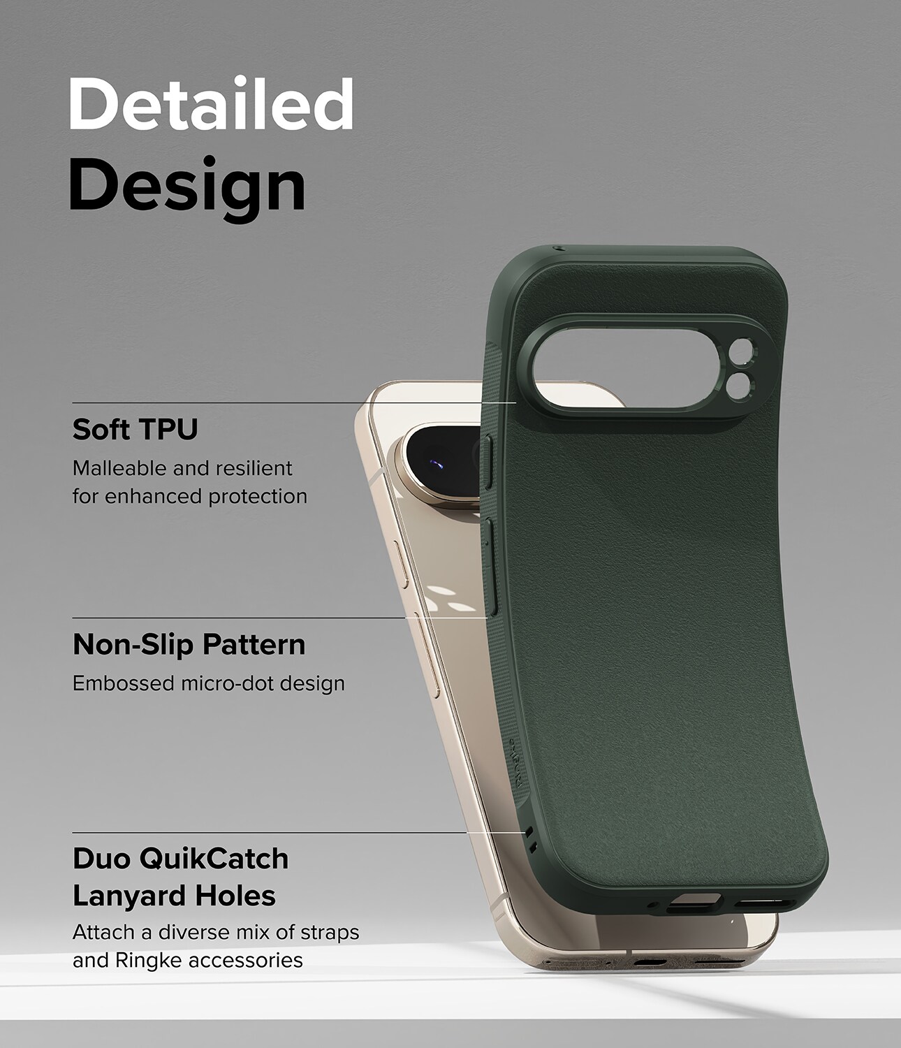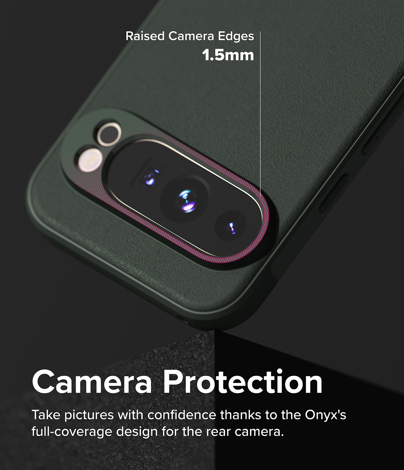 Det här är Onyx Case, det tuffa och snygga skalet Google Pixel 9 Pro från Ringke. Det här är inte bara ett skal; det är en riddare i skinande rustning med sitt eleganta utseende och kanonbra stötskydd. Tänk dig förstärkta hörn som en extra sköld, upphöjda kanter som en vallgrav, och knappar så taktila att de känns som en hemlig handskakning.