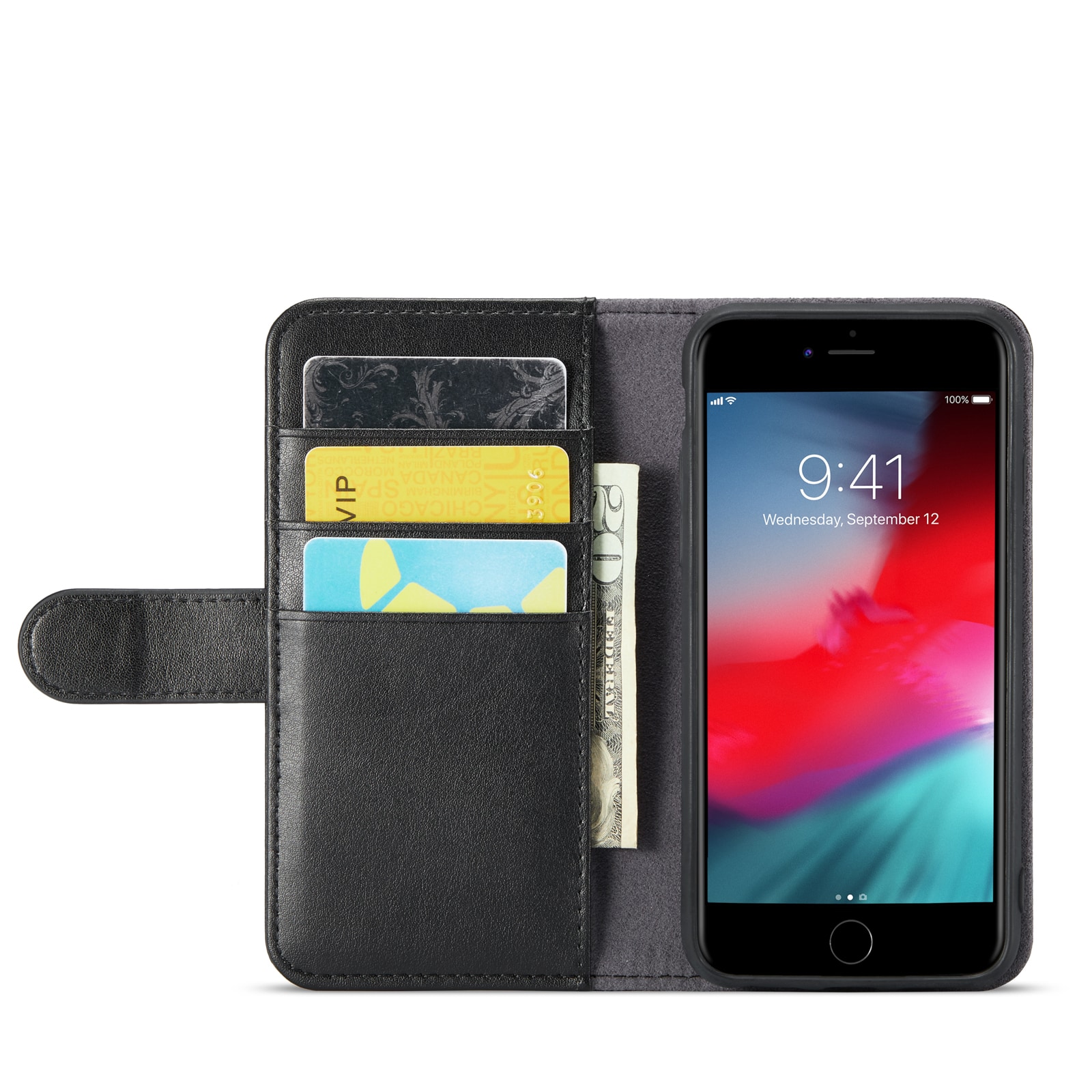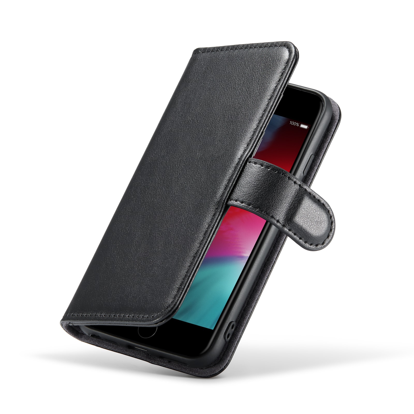 Din telefon sitter som en smäck i det inbyggda, stötdämpande TPU-skalet. Locket, som stängs med ett smart magnetspänne, skyddar både fram- och baksidan av telefonen. Inga fler skärmkrossar eller repor!